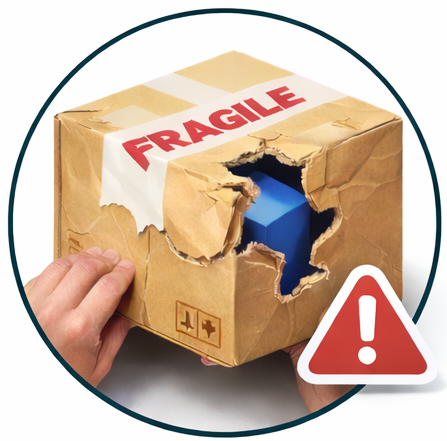Al momento della consegna, si riscontrano danni causati dal trasporto all'imballo e/o al materiale